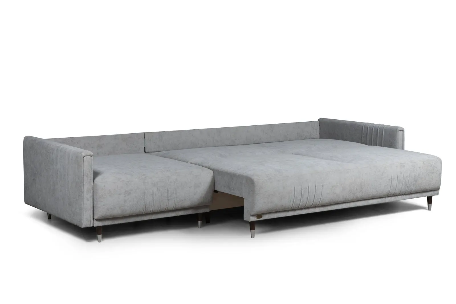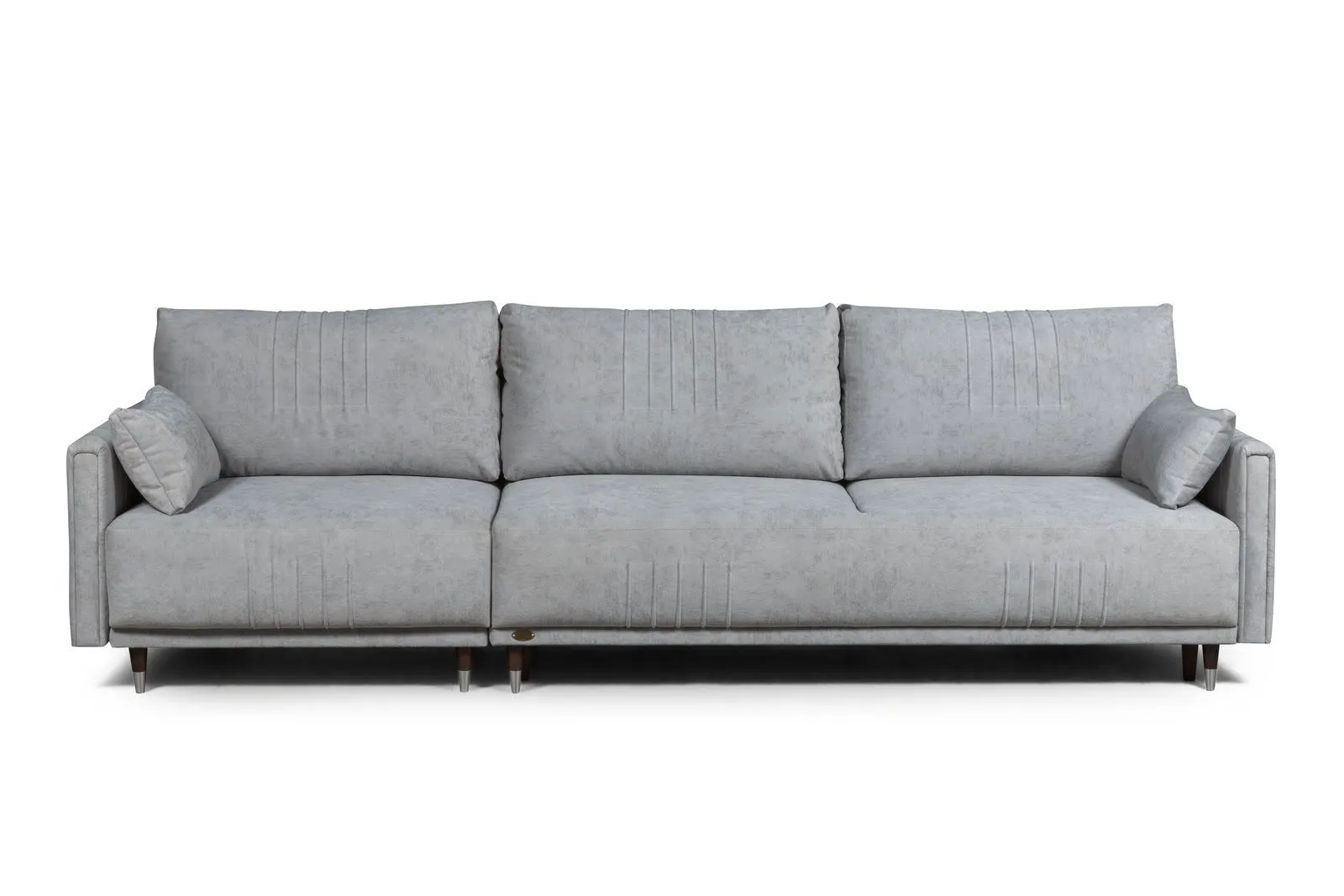 Диван‑кровать премиум‑класса, сочетающий элегантный лаконичный дизайн и исключительный комфорт. Мягкие упругие подушки, механизм «Тик‑так» для лёгкого раскладывания и вместительный ящик для белья делают его идеальным для ежедневного использования. Подходит для классических и современных интерьеров. Размеры: 3070×1130×960 мм, спальное место: 1900×1550 мм.