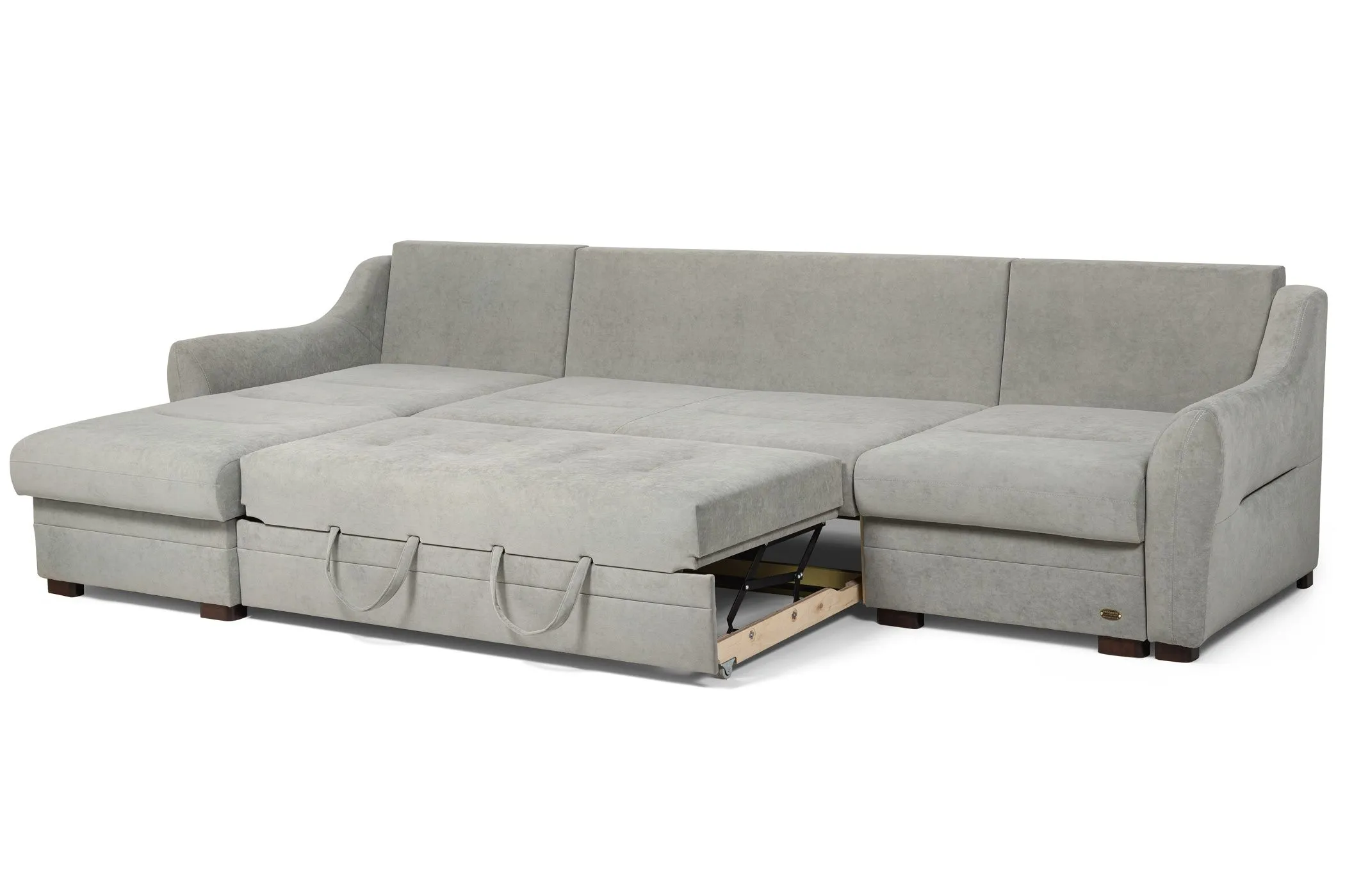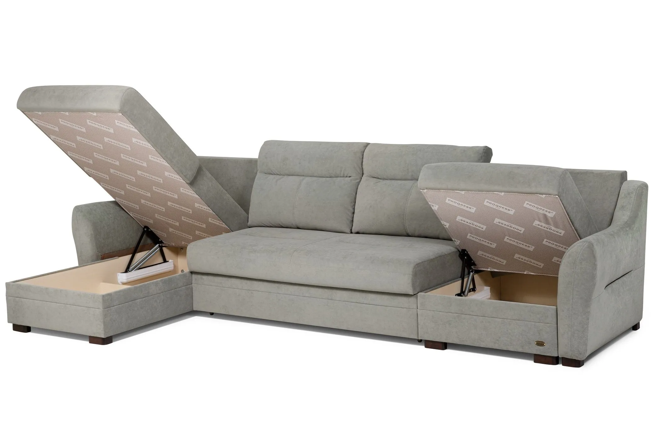 Просторный угловой диван, который станет сердцем вашей гостиной. Универсальный угол позволяет подобрать оптимальное расположение в комнате, а механизм «Дельфин» легко превращает диван в просторное спальное место. Вы можете выбрать обивочную ткань из широкого ассортимента — чтобы мебель идеально вписалась в интерьер. Мягкое сиденье с пружинным блоком «Боннель» гарантирует комфорт днём и крепкий сон ночью. Практичные ящики для белья добавляют функциональности.
